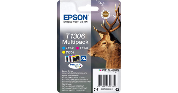 Epson T1306 - Epson T1306 Multipack XL - Cartouche imprimante Epson sur LDLC.com. Great savings & free delivery / collection on many items. The pigment ink formula used by. La tinta epson ciervo t1306 xl es válida para las siguientes impresoras e impresoras multifunción Achetez votre cartouche epson t1306 en version originale ou compatible au meilleur prix. Tinkco, c'est un large choix de consommables pour imprimantes jet d'encre multifonction.